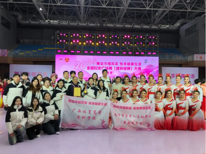 万博官网 高等专科学校代表队荣获青年组大集体规定项目一等奖、青年组大集体团体第二名、青年组大集体健身舞类自选项目三等奖、体育道德风尚奖;南宁市老年人活动中心(景越艺术团)代表队荣获常青组大集体规定项目三等奖。万博官网 、自治区妇联荣获优秀组织奖。