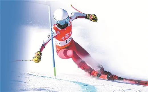 广西冬季项目运动员近年来在多项赛事中崭露头角,图为广西选手罗明秀在高山滑雪比赛中。