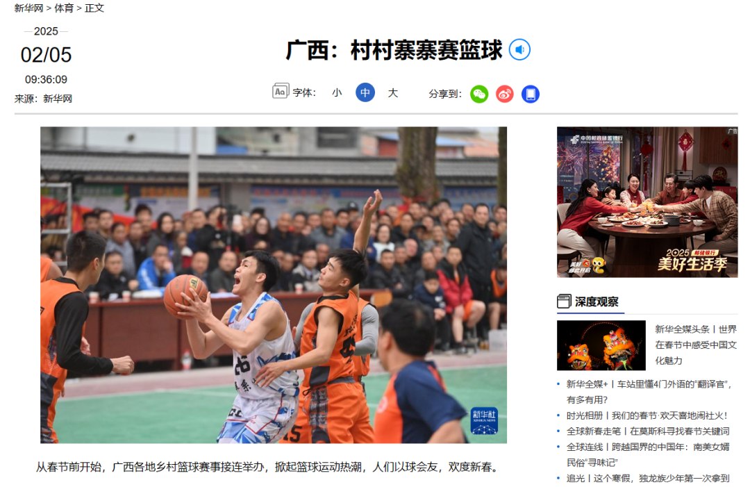 2月5日,新华社报道《广西:村村寨寨赛篮球》。